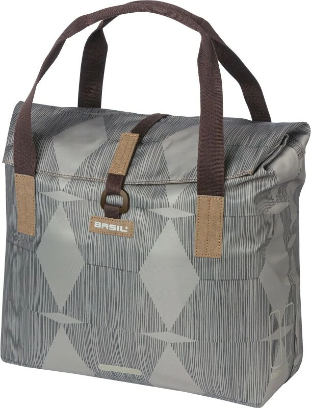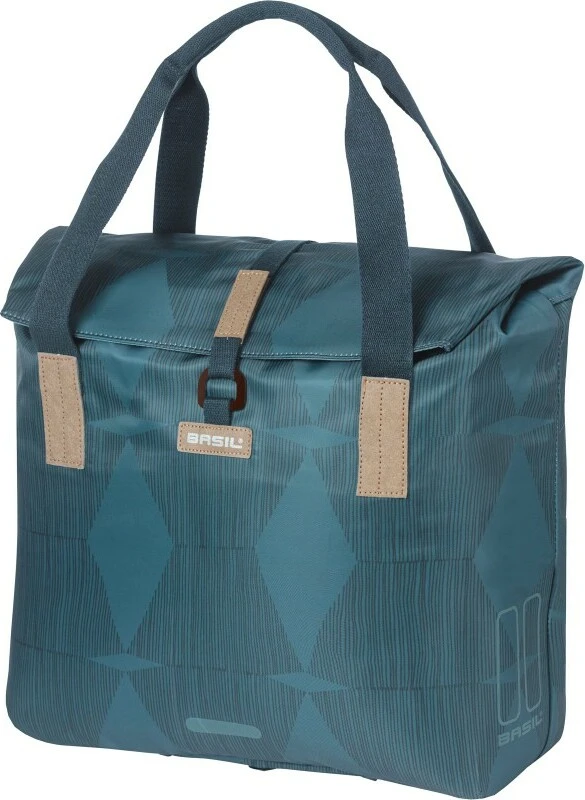 De Shoppertas van Basil is ideaal voor het bezoeken van winkels of voor het vervoeren van eigen spulletjes. Met zijn inhoud van 20 tot 26 Liter past er genoeg in en is dus perfect als fietstas te gebruiken. Het materiaal van de tas is gemaakt van waterafstotend en gerecycled PET. Daarnaast wordt de tas afgesloten via een vouwsluiting wat ook zorgt voor het drooghouden van alle spullen die in de tas zitten. Onder de tas zitten bodemdoppen, deze zorgen niet alleen dat de tas zelf beschermd wordt tegen de grond, maar ook de spullen in de tas die zo niet meteen op de grond terecht komen. Wanneer je klaar bent met fietsen kun je de tas eenvoudig van je drager af halen, want de tas zit met het Hook-On systeem vast waardoor je de tas snel en simpel van de drager haalt. Dan kun je de gepolsterde schouderbanden om je schouder slaan en verder te voet gaan. Kortom, deze ideale en duurzame tas kan gebruikt worden voor tijdens het fietsen en voor na het fietsen.Â